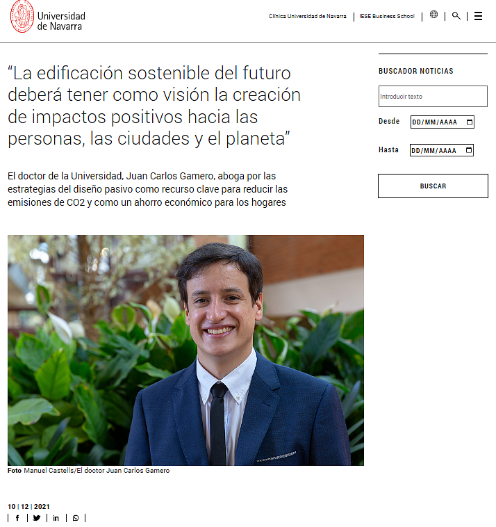 "La edificación sostenible del futuro deberá tener como visión la creación de impactos positivos hacias las personas, las ciudades y el planeta" - University of Navarra (UNAV)